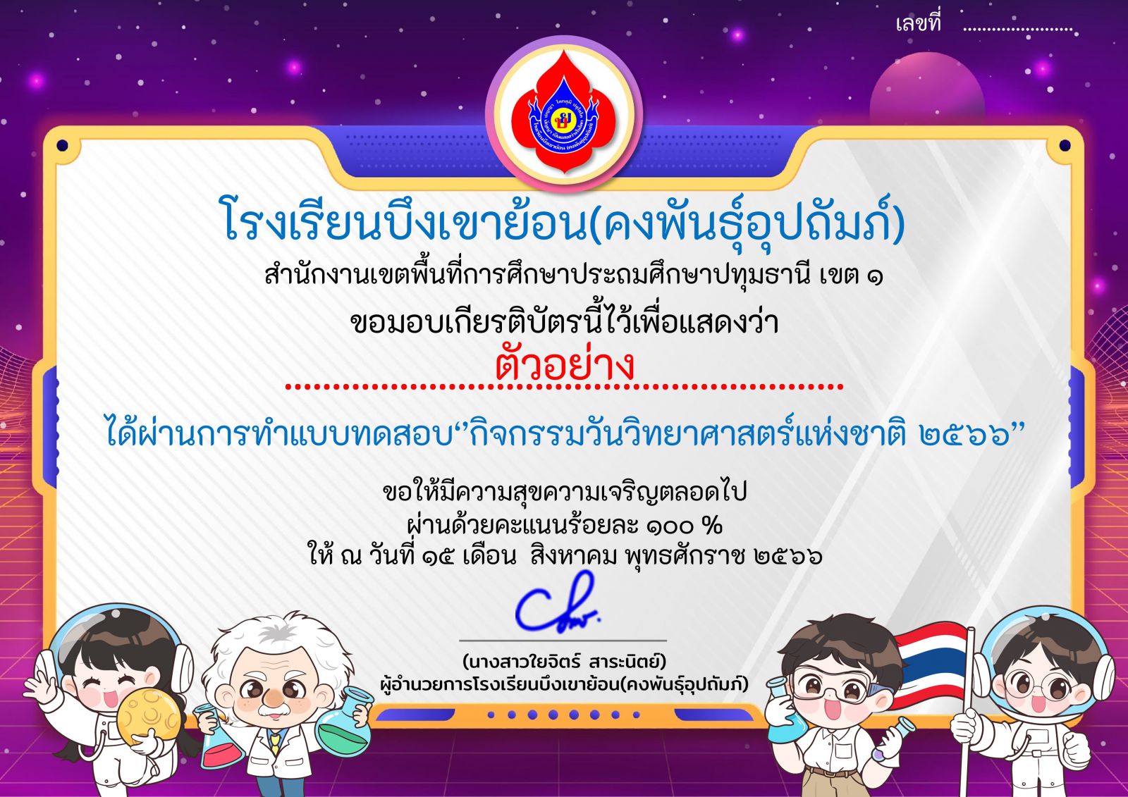 ????โรงเรียนบึงเขาย้อน(คงพันธุ์อุปถัมภ์) ขอเชิญชวนผู้ที่สนใจทุกท่าน ร่วมทำแบบทดสอบออนไลน์ ''กิจกรรมวันวิทยาศาสตร์แห่งชาติ ประจำปี 2566''